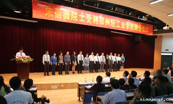 朱蓓薇院士在聘任仪式上讲话。她认为,近年来郑州轻工业学院在学科建设、人才队伍建设、人才培养和科学研究等方面取得了很大成绩。她表示,很高兴受聘郑州轻工业学院,今后将尽自己的一份力量,与团队其他成员一起为学校教育教学、科学研究和科学技术的产业化等方面的发展做出贡献。