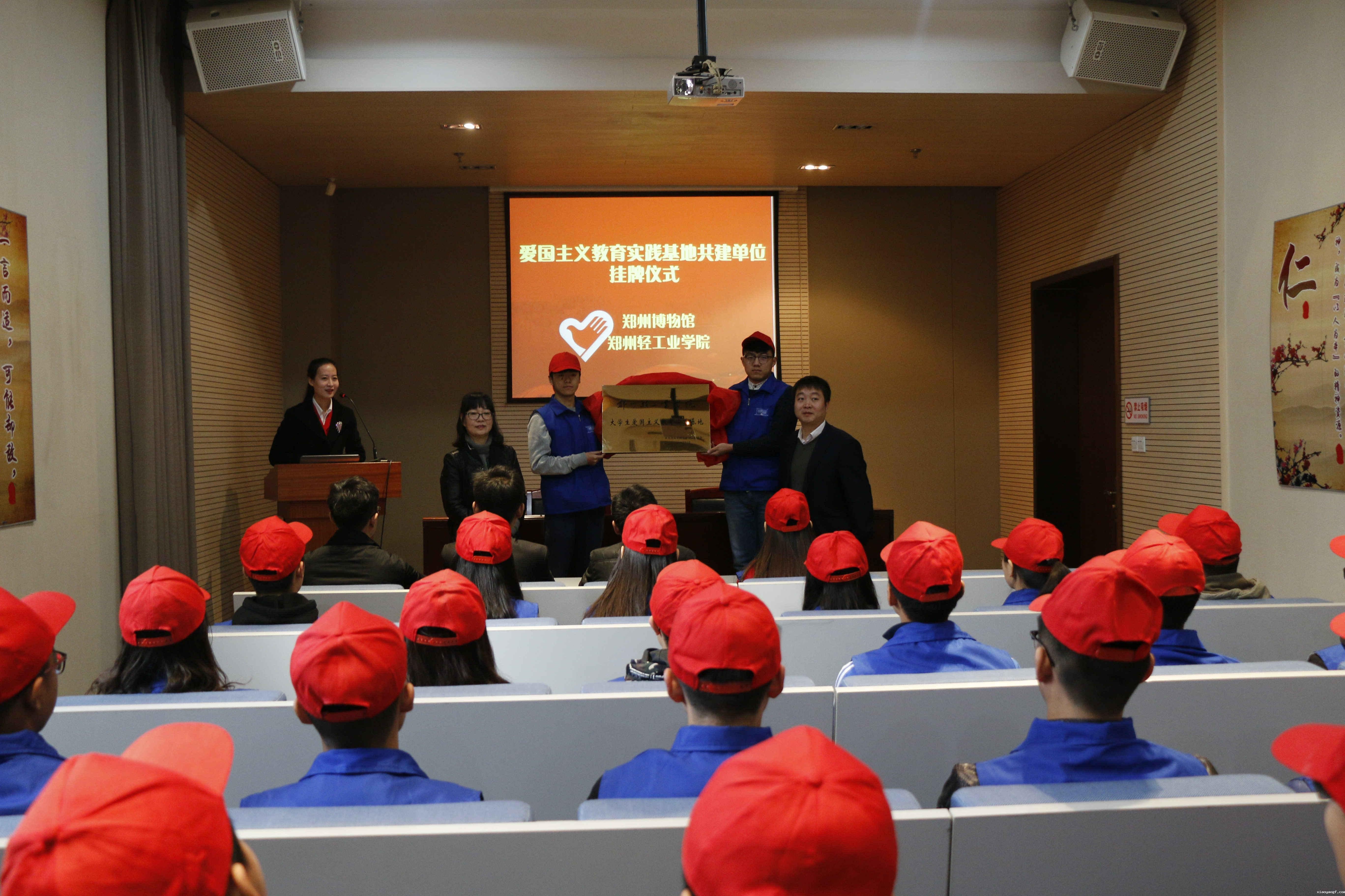 仪式伊始,主持人介绍与会领导与来宾。首先,校团委老师王银峰致词,他对基地筹备过程中给予我校大力支持和无私帮助的郑州博物院的领导和同志们表示感谢,希望同学们充分利用好共建基地这一宝贵资源,进一步培养和提高个人素质,为塑造健全的人格和崇高的品格奠定良好的基础,并进一步增强实现中华民族伟大复兴的精神动力;郑州博物馆副馆长孙歌华发表讲话,向到场的老师和同学表示诚挚的欢迎,并向同学们详细介绍了郑州博物院的历史和目前发展状况,希望我校广大青年学生从爱国主义教育实践基地中吸取无穷的精神力量,进一步增强对祖国的深厚感情;计算机与通信工程学院学生代表吴晓晨发言号召大家在学好专业知识的同时,努力加强世界观、人生观、价值观改造,并表达对我校爱国主义教育充满信心。接着,郑州博物院孙馆长与我校团委王老师分别代表双方签订共建单位协议书,并为“郑州轻工业学院爱国主义教育实践基地”揭牌。最后,由讲解员带领大家参观郑州博物馆展厅展览,此次共建大学生爱国主义教育实践基地签约暨揭牌仪式圆满结束。