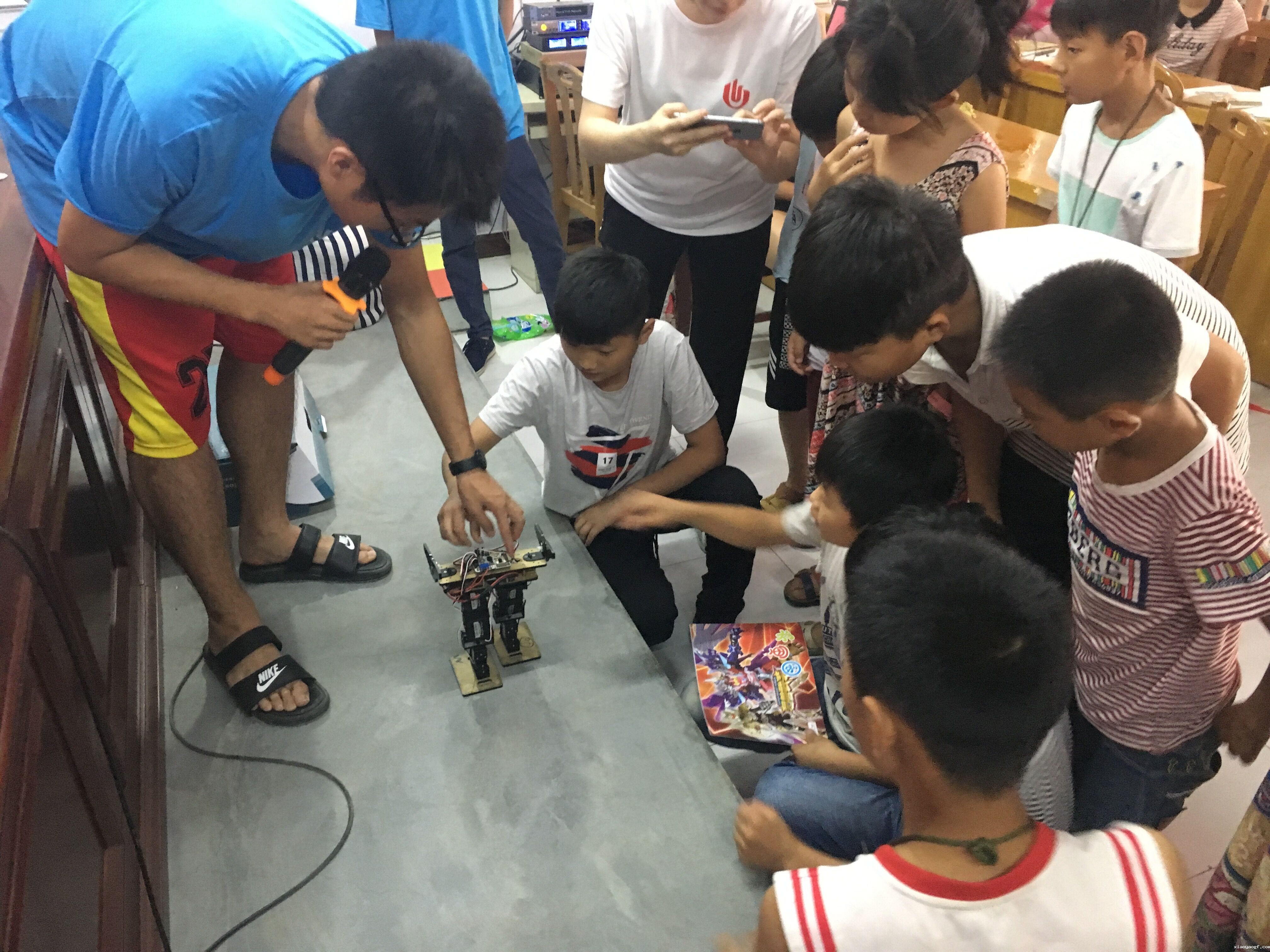 710日,小分队到达荥阳市聂楼社区。队员们把自己制作的无人机和智能机器人展示给前来观看的留守儿童小朋友们对无人机和机器人展现出浓厚的兴趣与积极高昂的热情,并且向队员们提出有关无人机与智能机器人方面的很多问题,队员们针对这些问题为他们一一解答,并普及了相关知识。最后,小分队成员在社区文化中心集中给留守儿童阐述无人机与智能机器人的相关原理和所运用到的知识,在讲解过程中队员们与小朋友们进行了互动。最后小分队成员以及全校各个志愿者队伍与留守儿童进行了合照留念。