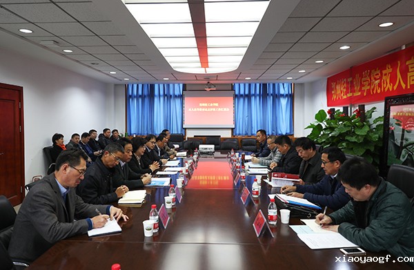 1130日 ,郑州轻工业学院成人高等教育试点评估工作汇报会在东风校区办公楼二楼大会议室召开。河南省教育厅成人高等教育试点评估专家组成员出席汇报会,我校成人高等教育评估工作领导小组成员、相关职能部门和二级学院有关人员、继续教育学院全体人员参加汇报会。汇报会由副校长王新杰主持。