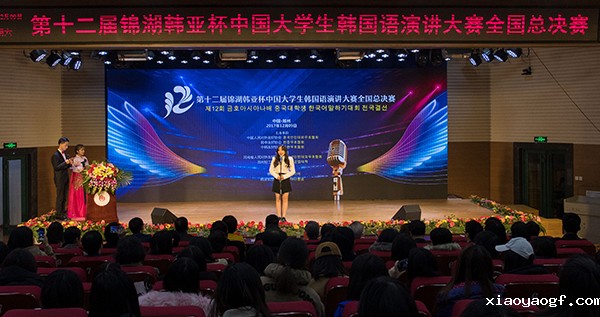 129日,由中国人民对外友好协会、中韩友好协会、韩中友好协会联合主办,河南省人民对外友好协会、郑州轻工业学院承办的第十二届锦湖韩亚杯中国大学生韩语演讲大赛全国总决赛在郑州轻工业学院教一楼讲演厅隆重举行。