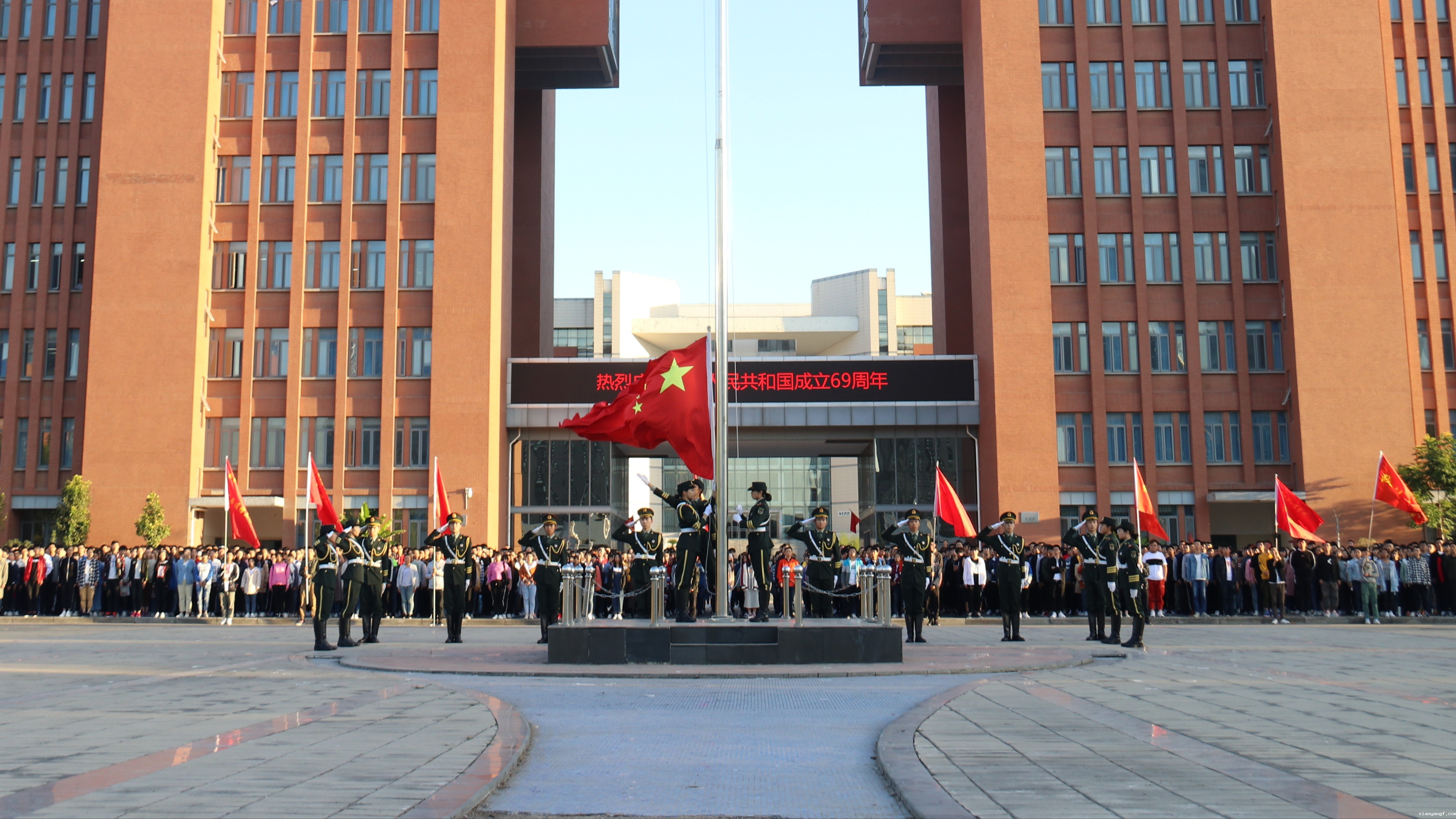 10月1日清晨,我校4000余名师生分别齐聚东风校区图书馆广场和科学校区主教楼广场参加升国旗仪式,共同庆祝中华人民共和国69周年华诞。