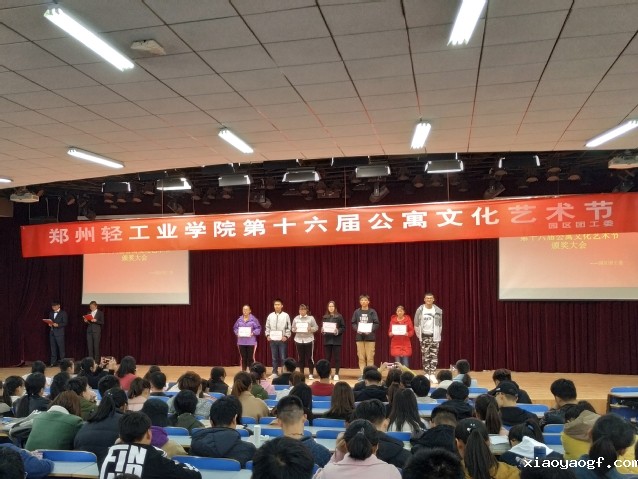 2018年11月29日中午、30日中午,由学生处、校团委、后勤保障服务中心主办,郑州轻工业学院学生会、各园区团工委承办的2018年度“公寓文化节”颁奖大会分别于在东风校区和科学校区成功举。相关部门负责人分别在两校区参加颁奖典礼。各学院学生会主席、生活部成员、获奖人员、校学生会干部以及团工委成员共计600余人到场观看。
