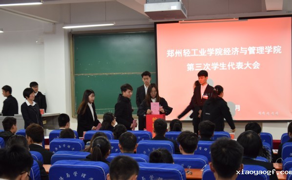 随后,各位代表分别审议并通过了《郑州轻工业学院经济与管理学院学生会工作报告》、《郑州轻工业学院经济与管理学院学生代表大会换届选举办法(草案)》,选举并产生新一届郑州轻工业学院经济与管理学院学生会主席团成员。最后,全体起立,奏唱《中国共产主义青年团团歌》,大会顺利闭幕。
