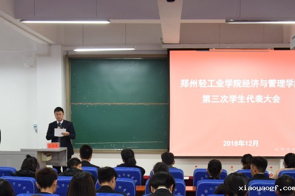 12月4日12时30分,郑州轻工业学院经济与管理学院第三次学生代表大会在经管楼211隆重召开。经济与管理学院党总支书记张云超、党总支副书记陈章美、校学生会副秘书长张健、分团委书记姚少华、学工办副主任王静、专职辅导员老师及全体学生代表出席了本次会议。本次会议由姚少华主持。