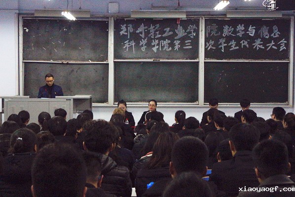 12月5日中午,郑州轻工业学院数学与信息科学学院第三次学生代表大会在东一楼218教室隆重召开。数学与信息科学学院党总支书记郭伍常、校学生会主席段子文、分团委负责人张智勤及全体学生代表出席了本次会议。