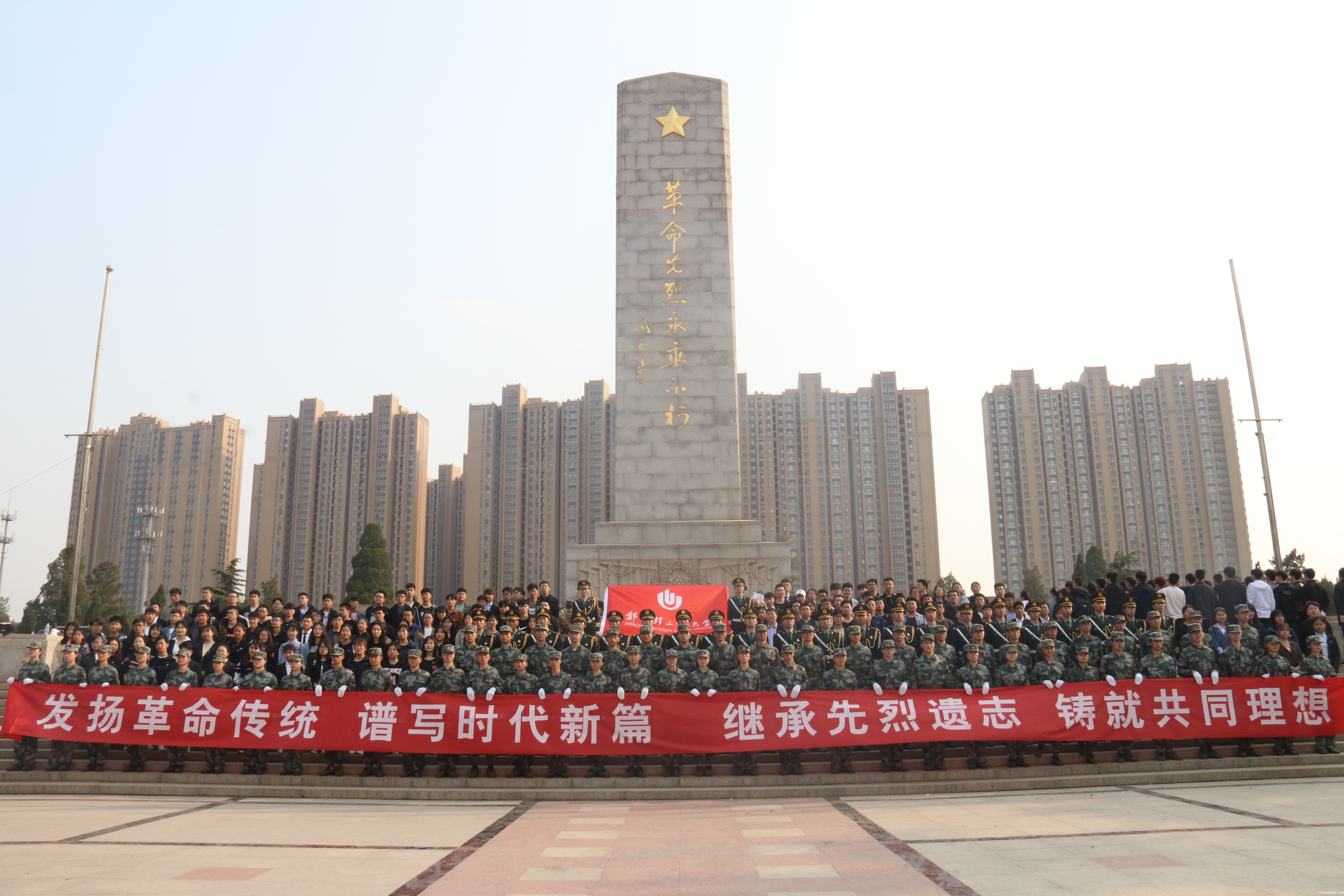 祭奠英烈活动仪式结束,所有师生在讲解员的带领下有序参观了烈士陵园,并列队来到中原英烈纪念馆。在纪念馆内,“青马工程”学员、团学干部代表、国旗护卫队依次重温入团誓词“我志愿加入中国共产主义青年团,坚决拥护中国共产党的领导……”宣誓完毕后,同学们在讲解员的带领下怀着崇敬之情,依次参观了工人运动的开展与大革命浪潮纪念厅、星火燎原土地革命战争厅、抗日战争厅、解放战争厅等10多个展厅。一件件珍贵的革命文物,一张张感人的历史图片,一个个震撼人心的故事,一幕幕惊心动魄的战斗场景,将大家带回艰苦卓绝的峥嵘岁月。最后全体师生在纪念馆前合影留念并有序乘车返回学校。