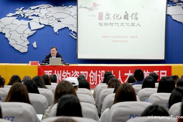 党委书记俞海洛结合十九大报告中关于文化自信的重要论述,以习近平总书记在“两会”中的重要讲话为切入点,从文化与文化自信的思想内涵、为什么要坚定文化自信、做新时代文化匠人三个方面,为全体师生带来了一场精彩的思想和文化盛宴。俞书记指出,中华文化自信来源于绵延五千年的璀璨文明,来源于中国共产党领导人民争取民族解放、国家独立、社会进步的伟大实践,来源于新时代中国特色社会主义的辉煌成就,坚定文化自信是实现中华民族伟大复兴中国梦的重要考量和关键所在。俞书记勉励大家努力做新时代文化匠人。一要坚持与时代同步伐,回答时代课题,讲好中国故事;二要扎根生活沃土,服务人民群众,承担起以文化人、以文育人、以文培元的历史使命;三要弘扬工匠精神,传承匠心之美,以精益求精的态度继承发扬传统文化,努力打造时代精品。