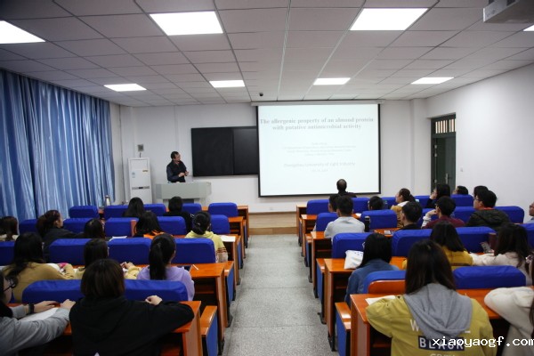 1025日,张玉柱教授在科学校区食工楼209为我校师生作了题为“The allergenic property of an almond protein with putative antimicrobial avtivity”的学术报告。张玉柱教授主要介绍了过敏原的种类,特征,致敏分子机制等最新研究进展,重点报告了其发现的杏仁中一种具有抗菌活性的蛋白过敏原,同时报告了其实验室对坚果过敏原的检测和降低坚果过敏原的过敏性所采用的最新方法和新技术。张教授的报告,为相关教师和研究生的科研提供了新的思路。
