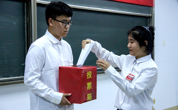 随后,星空平台下载第三十九届学生会主席幸鸿枫做学生组织工作报告。全体学生代表对工作报告和学生组织章程进行审议,表决通过了大会选举办法和学生组织章程、学生组织主席团候选人产生办法和候选人名单、总监票人监票人和记票人名单,经过投票、计票等过程,成功选出了星空平台下载新一届学生会主席团成员。
