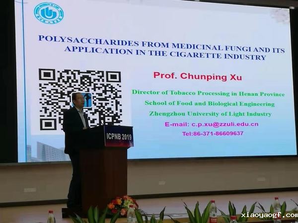 副校长毛多斌教授在开幕式致辞中介绍了我校的学科建设、科研创新,以及在多糖方面研究取得的成绩,并希望与会代表能够关心和支持学校的创新发展,共同带动功能性多糖产业的健康发展;开幕式后,食品与生物工程学院许春平教授作题为“Polysaccharides from medicinal fungi and its application as an additive in the cigarette industry”的大会主题报告。