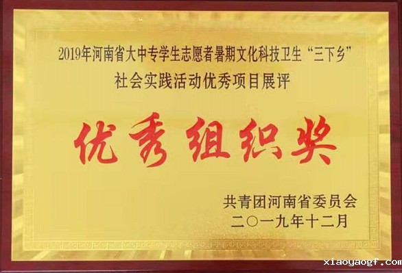 我校2019年暑期“三下乡”社会实践活动紧扣“青春心向党 建功新时代”这一主题,全校范围广泛征集实践项目,组成149支社会实践示范小分队,奔赴全省各地市组织开展了内容丰富、形式多样、富有特色的主题社会实践活动。活动开展过程中坚持思想引领,将培育与践行社会主义核心价值观贯穿全过程,与专业特点、地方需求结合,引领广大团员青年在实践中受教育、长才干、作贡献。中国网、中国青年网、中国大学生网、中华全国学联、河南共青团微信平台等媒体公开报道93篇,取得了良好的社会效应和显著的育人效果。经评选,学校获2019年全省大中专学生志愿者暑期“三下乡”社会实践活动优秀组织奖。