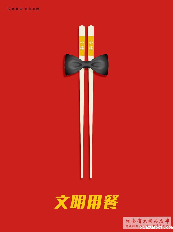4月19日,学习强国河南平台发布《“文明健康 有你有我”公益广告宣传行动——文明用餐》,报道我校学生曹翠翠公益广告作品,整张海报画面由公筷和领结组成,简洁明了。领结作为文明的一个符号,寓意使用公筷是一个文明行为。整个作品呼吁大家:使用公筷公勺,减少交叉污染。全文如下: