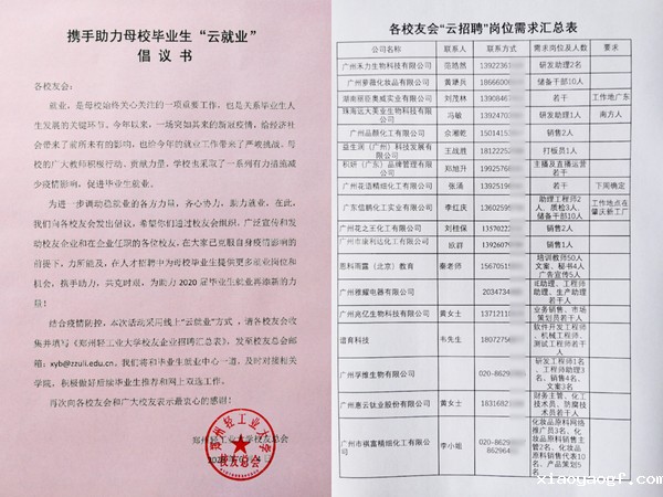 在学校“云就业”倡议发出后,北京校友会、上海校友会、广东校友会等地方校友会,食品行业校友会、日化行业华南校友会、日化行业华东校友会等行业校友会,以及国旗班校友会、艺术团校友会等社团校友会,积极响应,广泛参与,很快在校友中引起了热烈反响,达成了广泛共识,广大校友企业、校友任职企业通过不同方式,积极为毕业生牵线搭桥、提供岗位。经各校友会和广大校友的共同努力,共有50多家校友企业参与“云招聘”活动,提供就业岗位300余个,涉及全校20多个专业,400余名毕业生参与了“云招聘”活动,180余人达成就业协议。
