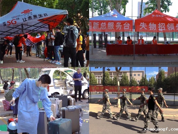 朝六集合--乘坐校车班车赶往报到服务站,晚九守候--整理新生报到材料整理数据,整个深夜--准备着夜间新生报到入住安排;校门口引导疏通,干燥的空气让数十名师生志愿者嗓子喊得沙哑,校园内安全巡查,秋老虎太阳下志愿者们着装长袖军礼服有序前行,新生一件件行李,所有搬运志愿者从早到晚不停汗流浃背。忙碌在各个岗位上的志愿者们,战胜了新生的18000余件行李物品的负重和忙碌不停的疲惫,更是感动了每一位新入校的轻大学子。