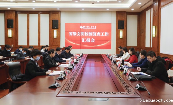 复查汇报会在科学校区双创中心第一会议室举行。省级文明校园复查组全体成员,校领导俞海洛、黄荣杰、马英、刘新田、王新杰出席汇报会。校精神文明建设指导委员会成员、文明办工作人员参加汇报会。汇报会由校长黄荣杰主持。