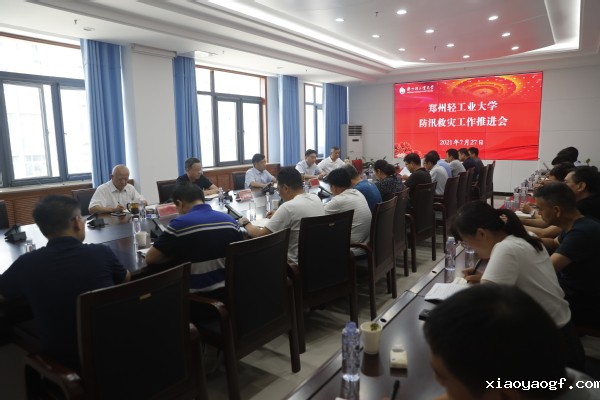校长黄荣杰讲话。他首先对学校前一阶段防汛抗洪工作表示肯定,并对坚守在一线的工作人员表示感谢。黄校长指出,党中央、国务院对河南防汛救灾工作高度重视,习近平总书记作出重要指示,李克强总理作出批示,省委、省政府及早部署、靠前指挥,全校上下团结一心、众志成城,防汛救灾工作取得阶段性成效。此次强降雨造成了部分楼宇内涝,灾后恢复任务艰巨,做好卫生防疫工作,防止出现“大灾之后有大疫”,保障全校师生生命安全至关重要。对扎实推进防汛救灾和灾后重建工作,黄校长要求,一是要充分认清形势,强化责任担当。越是特殊时期,越是需要各级领导干部带头担当作为。要充分认清当前复杂严峻的防灾救灾形势,把做好防汛救灾和灾后重建工作当作当前最大的政治任务、当前最紧要的工作来抓。二是要坚持生命至上,突出防范重点。树牢生命至上理念,将“生命高于一切”落实到防汛救灾各环节全过程,坚持思想到位、行动到位、措施到位,在排涝抢修中严格遵守带电作业安全规范,确保抢险救灾中不发生安全事故。要加强师生安全教育与管理,切实帮助师生解决存在的困难。三是要抓紧灾后重建,尽快恢复秩序。强化人员统筹、物资统筹、设备统筹,积极协调对接市政服务和外界援助,保水电供应、保基础设施、保通信畅通,尽快解决水电供应、垃圾清运、大型设备维修更换、墙体建筑排险加固等急难险重问题,尽快恢复正常工作学习生活秩序。四是要加强统筹兼顾,确保校园稳定。坚持两手抓两不误,统筹好灾后防疫和新冠肺炎疫情防控,统筹好重点工作和防灾救灾工作,统筹好当前防范和长远预防工作,统筹好师生帮扶和学生教育管理工作。他强调,当前新一轮台风暴雨即将来临,全省上下仍处于防汛救灾的关键时期,后期工作还有很多,希望大家继续发扬连续作战、敢打必胜的精神,汇聚起众志成城、共克时艰的强大能量,坚决筑牢学校安全防范底线,坚决打赢防汛救灾及灾后恢复这场硬仗,确保师生生命和财产安全。