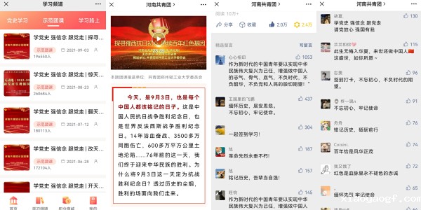 为深入学习贯彻习近平总书记在党史学习教育动员大会、在庆祝中国共产党成立100周年大会上的重要讲话精神,着力引导青年学生深刻理解把握中国共产党百年奋斗历程,进一步推动党史学习教育入脑入心,我校根据青年学生的需求和实际承办的“学党史 强信念 跟党走|探寻豫西抗日初心 赓续百年红色基因(纪念抗战胜利76周年专题示范团课)”,9月3日通过“河南共青团”微信公众号推送,在全省青少年中引起了热烈反响,发布两日内,阅读量达10万+,点赞数16164个,在本周全国共青团系统热文榜单中获首位。截止发稿,示范团课的学习量仍在持续攀升。