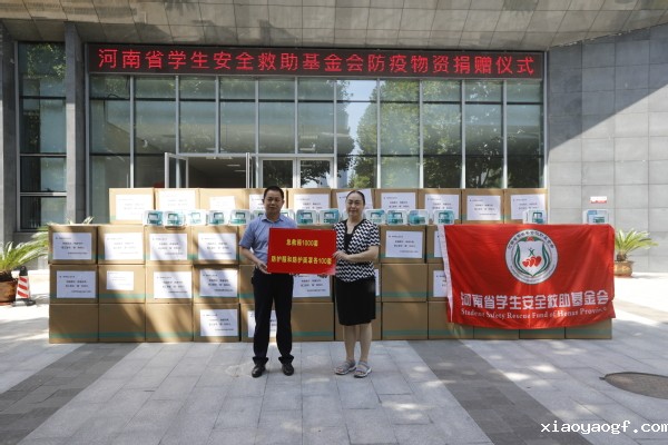 河南省新的社会阶层人士、基金会秘书长苏军辉代表基金会向我校捐赠防疫急救箱1000套、防护服和防护面罩各100套。河南省新的社会阶层人士、基金会学生发展委员会副主席、我校校友祝晓琳参加活动。