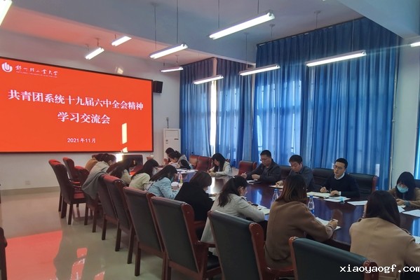 根据学校党委和团省委工作部署,11月18日,校团委召开学校共青团理论学习中心组(扩大)会议,开展专题学习研讨,传达党的十九届六中全会精神。会议指出,学习宣传贯彻党的十九届六中全会精神是全校各级团组织和团员青年当前和今后一段时期的重要政治任务,要按照《关于认真学习宣传贯彻党的十九届六中全会精神的通知》(郑轻大团【2021】50号)有关要求,精心谋划部署好学习宣传贯彻工作,推动党的十九届六中全会精神在全校共青团真正落到实处。