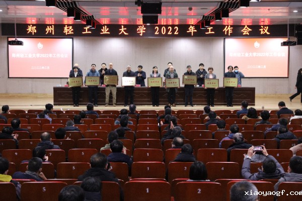 会上表彰了2021年度考核优秀、良好单位,副校长刘新田宣读表彰决定,校领导为考核优秀单位颁发了奖牌。