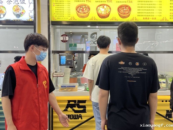 12点10分,在食堂做文明督导志愿者,提醒同学们佩戴口罩,在餐厅内来回巡视,协助餐厅工作人员引导同学们排队打饭,维持良好秩序。