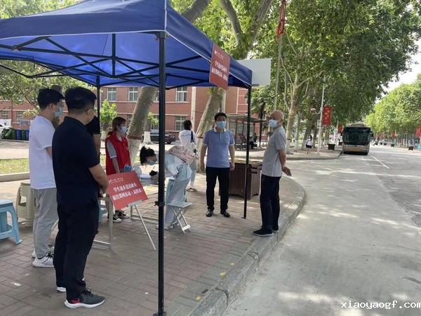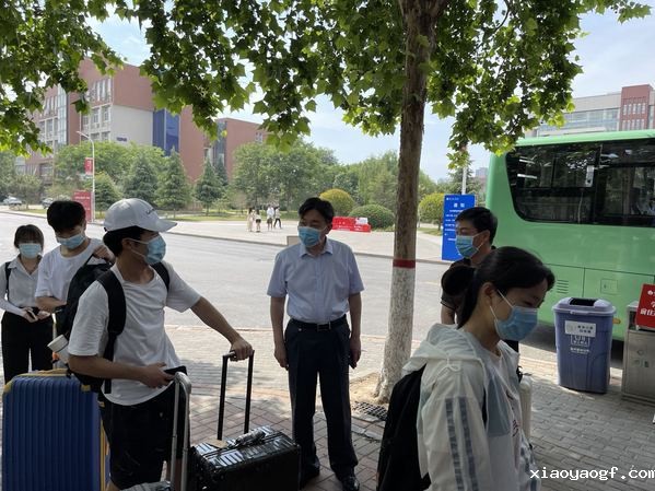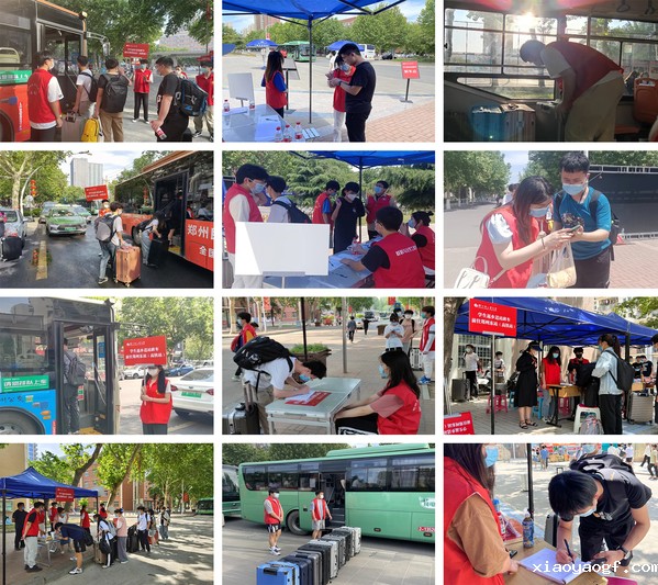 “同学们,这辆车是前往郑州高铁东站,请不要坐错班车”“同学,你火车是几点的?到东站大概需要2个小时左右”“同学你好,在这里登记信息,请出示请假手续”值班老师和志愿者们顶着30多度的酷暑,仍然坚守着岗位,不厌其烦的反复提醒着注意事项,为每一位返乡学子撑起了一个中转的家。