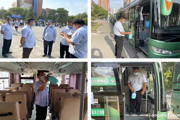 为我们“轻大定制”班车提供服务的是来自郑州公交二公司的师傅们,他们迎着朝阳上班,伴着日落收车,每天工作超过12个小时。早上6:30分准时到达校园后,师傅们便开始车厢消毒、规划路线、讨论发车顺序,只为更早、更安全的将返乡学子送往目的地。