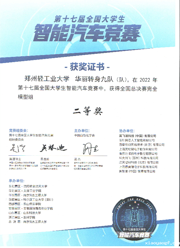 河南分区赛中,我校共派出6支队伍参赛,6支队伍均获奖,其中赛区二等奖5项、三等奖1项。全国大学生智能汽车竞赛由教育部高等学校自动化类专业教学指导委员会创办,并被教育部批准列入国家教学质量与教学改革工程资助项目,是一项以“立足培养、重在参与、鼓励探索、追求卓越”为指导思想,以智能汽车为研究对象的创意性科技竞赛,是面向全国大学生的一种具有探索性工程实践活动,竞赛内容综合性强,涵盖了控制、模式识别、传感技术、电子、电气、计算机、机械、通信、汽车工程等多个学科知识。