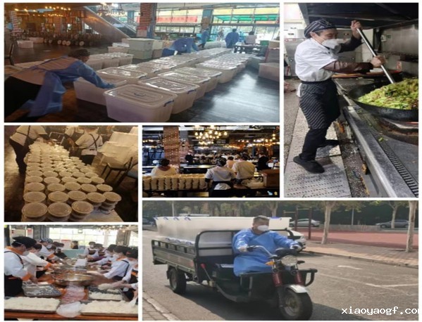 民以食为天,两校区三万多名师生的餐饮保障成了后勤工作的重中之重。为确保食品安全及供应充足,膳食管理科严格遴选资质齐全的食材供应商和配餐公司,实行双保供餐模式,同时加强质量监管,对配餐公司食品实行双留样,对食材采购和配餐车辆进行严格消杀,对食品加工、制熟、配餐、送餐等环节进行层层把关、严管细控,多措并施守护校园舌尖上的安全,他们打破原有的供餐模式、挖掘潜力、重组队伍、组建新的供餐模式。凌晨三点多,当您还在甜甜的睡梦中的时候,食堂师傅们已经开启了一天的忙碌:蒸包子、煮鸡蛋、熬稀饭……操作间里热气腾腾、忙碌异常,工作人员打包装箱、相互配合,努力将一盒盒带着温情的早餐配送至每个宿舍学生的手里……来不及片刻休息、紧接着便是又一餐的准备和供应:蒸米、择菜、洗切、拌炒、装盒、配送、回收餐箱、保洁、消杀……午餐、晚餐,全流程几乎无缝衔接。从天未亮,至夜幕临,餐饮管理员及一线服务人员不分昼夜奔波于食堂和宿舍之间,他们克服了供应量大、人手不足、食材配送困难、学生住宿分散等诸多现实困难,每天工作近十六个小时,尽心竭力保障好师生们的一日三餐。
