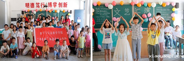 夏日筑梦暖童心,温情关怀助成长。数学与信息科学学院“常青数”暑期志愿服务队来到安阳市安阳县马家乡岭头小学开展活动,志愿者根据孩子们的切实需求,为学生制定美术工艺、安全教育、特色舞蹈、趣味国学、自然地理等兴趣小课堂;为乡村小学的假期教育增设美育教育环节,在国学课上引领孩子们学习中华传统美德和文化,在美工课上带领孩子们用自己丰富的想象力描绘出一幅幅美丽的作品;为孩子们创造一个展示自我的机会,由志愿者和孩子们共同排练的文艺汇演在当地小学举办,现场充满欢声笑语,热闹非凡,精彩的节目赢得了家长及观众的阵阵掌声。