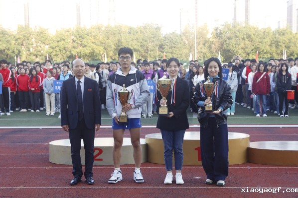 校长魏世忠为获学生男、女团体总分前三名的单位颁奖