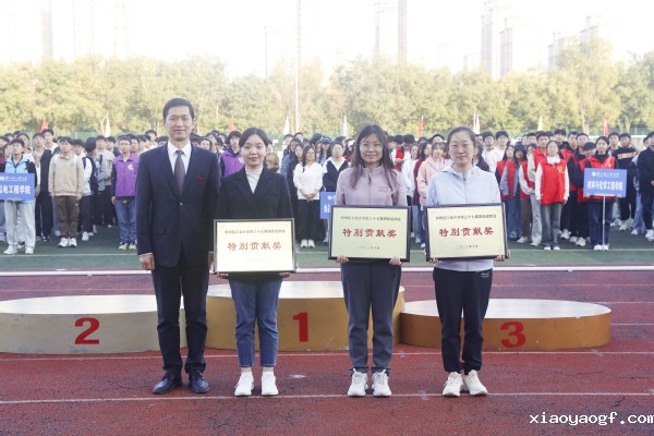 副校长张骁为获学生女子团体前三名的单位颁奖