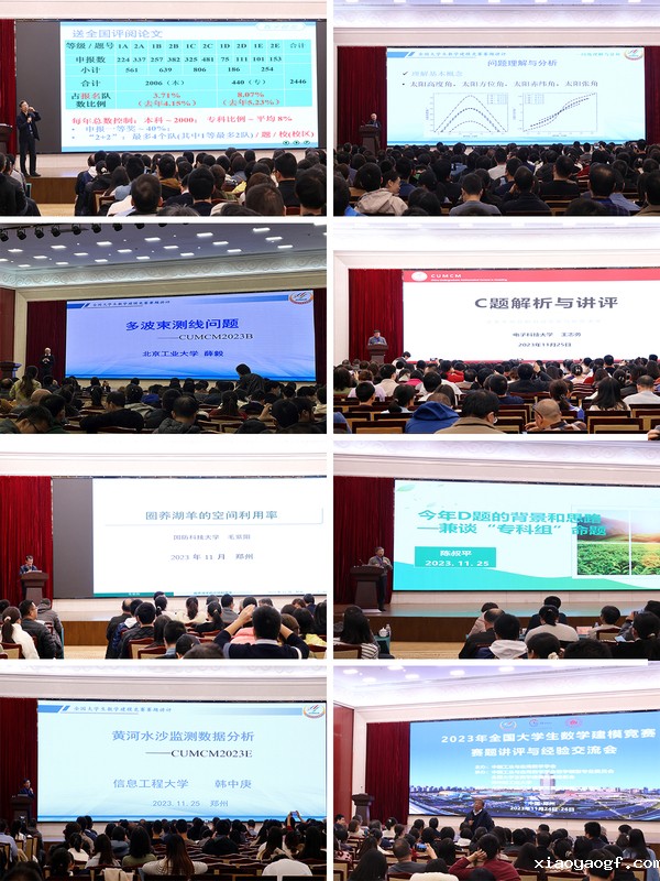 11月24-26日,由我校承办的“2023年全国大学生数学建模竞赛赛题讲评与经验交流会”在郑州市融通紫荆山宾馆隆重举行。会议由中国工业与应用数学学会主办,中国工业与应用数学学会数学模型专业委员会、全国大学生数学建模竞赛组委会和星空平台链接共同承办,全国大学生数学建模竞赛河南赛区组委会协办,来自清华大学、浙江大学、国防科技大学、电子科技大学、北京工业大学、华东理工大学等全国400多所高校的800余名数学建模一线教师参加了本次大会。