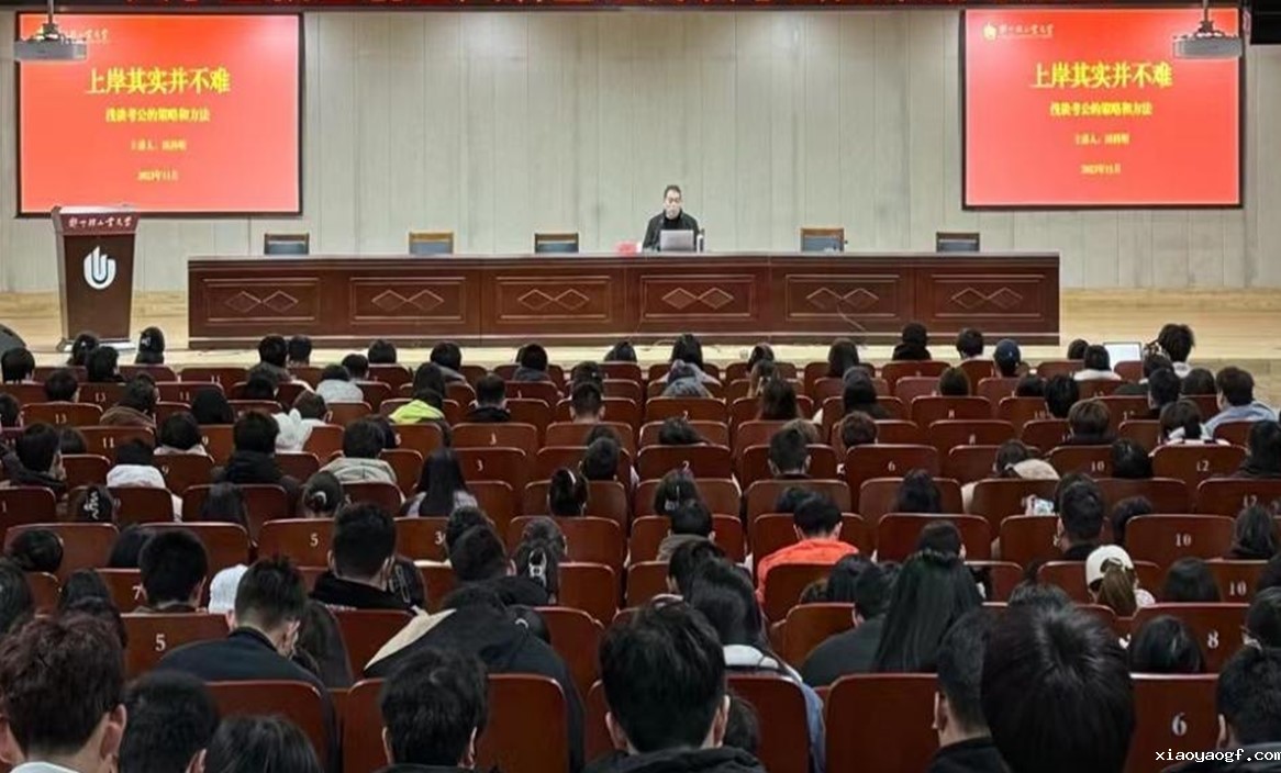 本次讲座主讲人是我校食品科学与生物工程学院2006届田科明校友,他拥有17年在市、县、乡多岗位工作经历,多次担任公务员面试考官,拥有丰富公务员面试辅导经验。讲座中,田科明以“上岸其实并不难”为题,首先分析了大学生择业心态与就业趋势,介绍公务员岗位优势、适合参加公务员考试人群等内容,还重点讲解了公务员备考黄金期是哪些时段、公务员考试笔试如何准备才更有效、公务员面试取得高分需具备辩证、发散和讨论三种思维、选调生分类及差异性招录条件需要注意事项、事业编制与三支一扶的优缺点有哪些等实用技巧和经验分享。他还鼓励现场学生要持续强化道德素养、锻炼表达能力、培养公务员思维,常学常新、与时俱进。最后,他在现场交流环节,结合近年来公务员面试典型题目进行示范展示,让每位聆听讲座学生都体会深刻,收获很多,更加坚定了参加公务员考试信心底气。