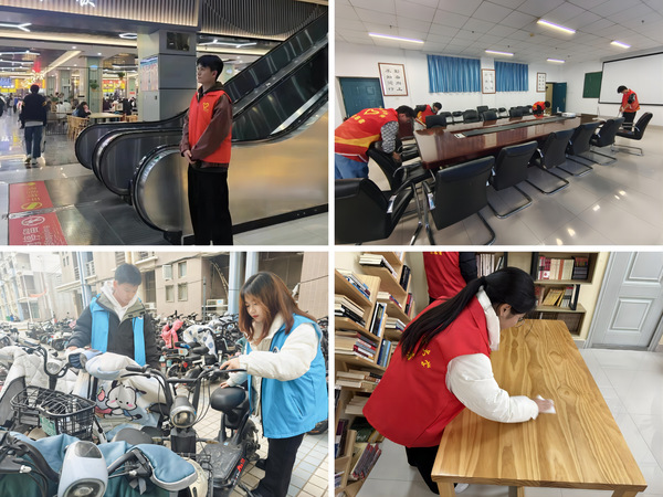 “雷锋精神,人人可学;奉献爱心,处处可为。”艺术设计学院、能源与动力工程学院、电子信息学院、政法学院、体育学院等组织学生志愿者,分别在实验室、图书馆和校园内开展卫生清扫和环境美化志愿服务。机电工程学院、能源与动力工程学院组织学生志愿者在校园内整理停放不规范的非机动车,及时制止车辆乱停乱放行为。经济与管理学院开展文明就餐志愿服务活动,积极在校园餐厅内引导同学们共同维护餐厅秩序,倡导餐桌文明,减少餐饮浪费。