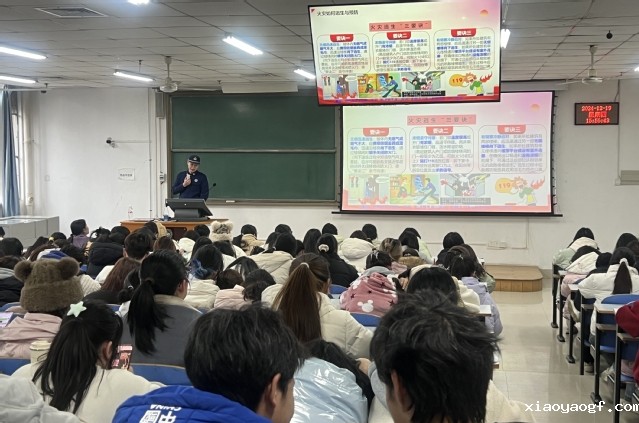 杨孟臣教官从影响较大的火灾案例、校园火灾预防措施与方法、什么是火灾、教学楼办公场所安全隐患、如何防范教学楼火灾、初起火灾的处置、火灾如何逃生与预防等方面,运用专业的知识、具体事例并结合相关视频,理论联系实际,生动形象地为学生们系统讲解了消防安全知识。最后他引用古人云:“防为上,救次之,戒为下”,强调同学们一定要增强消防安全意识,做好消防安全预防工作,共建平安和谐校园。
