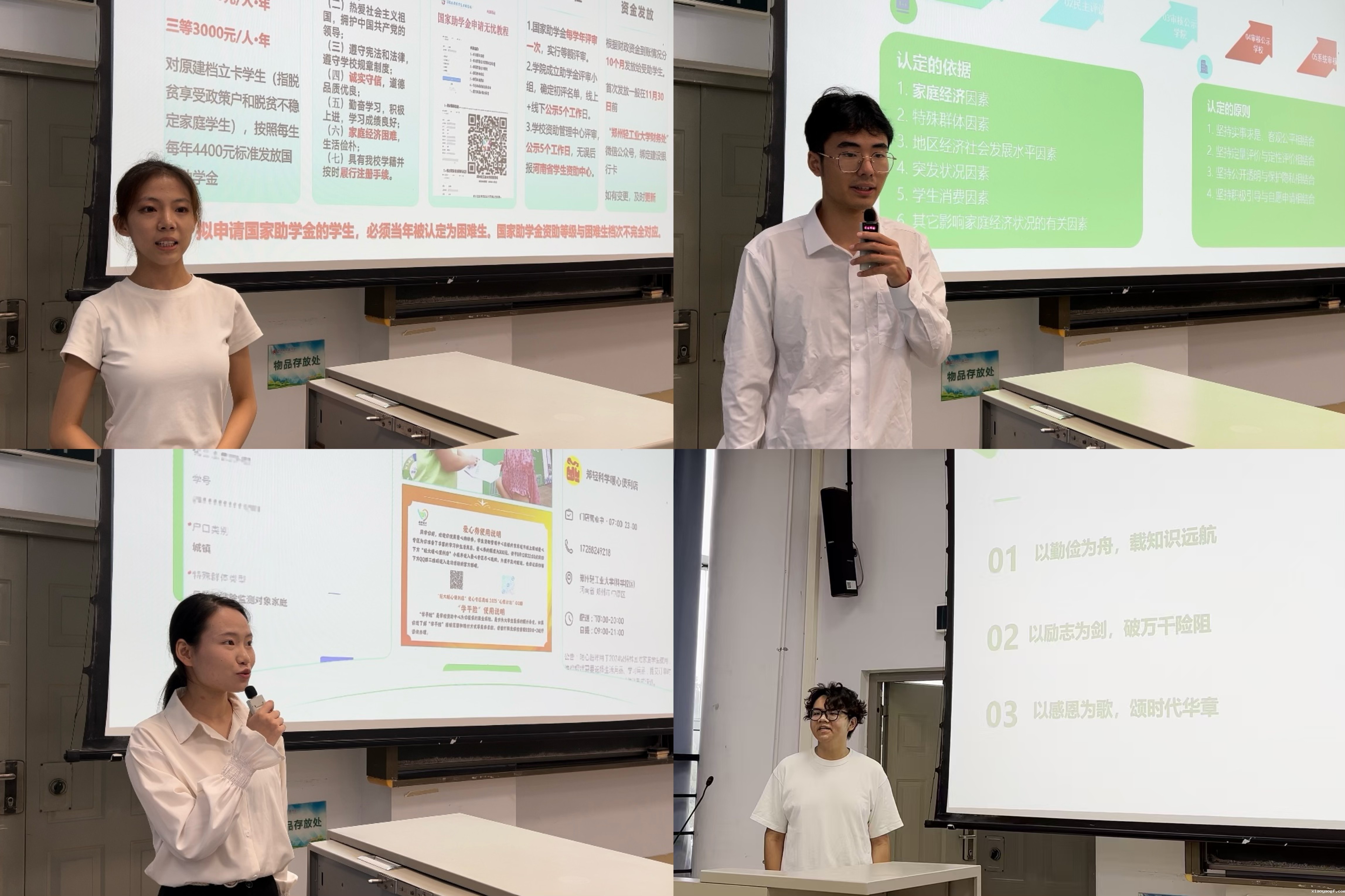 学校高度重视学生资助政策宣讲工作,自今年5月起,学生资助管理中心与“为之敏行”辅导员工作室“润心”工作组协同合作,精心研制学生资助政策“两节课”宣讲课件。通过组织各学院资助工作人员开展多轮集体备课、试讲与磨课,最终形成内容全面、结构科学、表述规范的统一课件模板。该模板既保障政策解读的准确性和一致性,也鼓励各学院融入本院特色资助举措和优秀受助学生典型案例,打造具有学院特色的个性化宣讲版本,为后续政策宣讲奠定了扎实基础。8月底,学生资助管理中心顺利完成多轮次学生资助宣传大使的遴选与培训工作,最终聘任15名优秀受助学生担任校级资助宣传大使。通过系统政策培训、宣讲技巧辅导及模拟演练等形式,全面增强了学生资助宣传大使的政策理解力与现场表达力,为公开课的高质量开展提供了有力保障。
