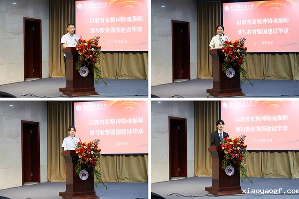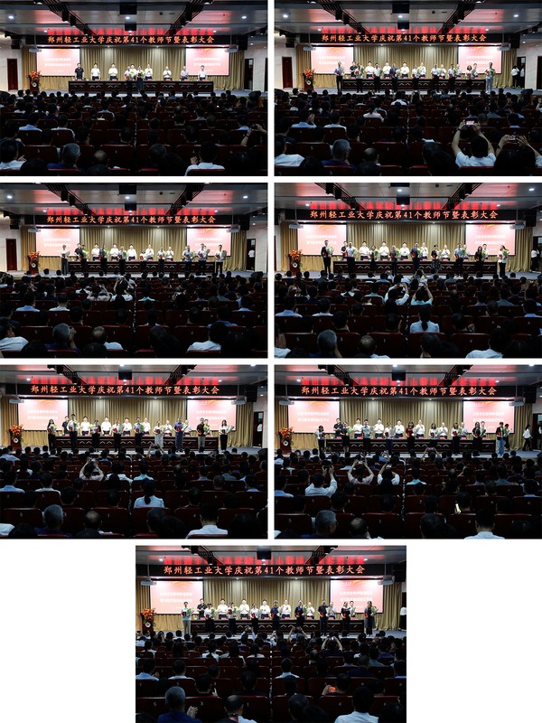 大会在庄严的国歌声中拉开帷幕。校领导先后宣读全国高校黄大年式教师团队、全国高校教师教学创新大赛、河南省教学名师等表彰文件,为受表彰教师代表颁发了荣誉证书。教师代表王永华、孙亚梅、刘晏男和学生代表赵富坤先后发言,分享从教心得或成长感悟,表达对教育事业的热爱或对老师的感恩之情。